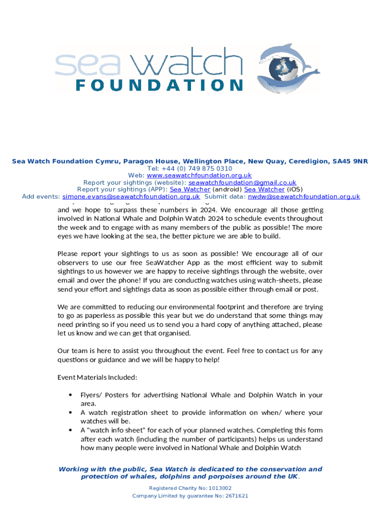 Template National Whale and Dolphin Watch 2024 Watch Registration instructions