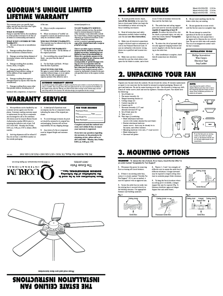 QUORUM\'S UNIQUE LIMITED LIFETIME WARRANTY This warranty gives you specific legal rights, and you may also have other rights which vary from state to state. WHAT IS COVERED Except as specified below,