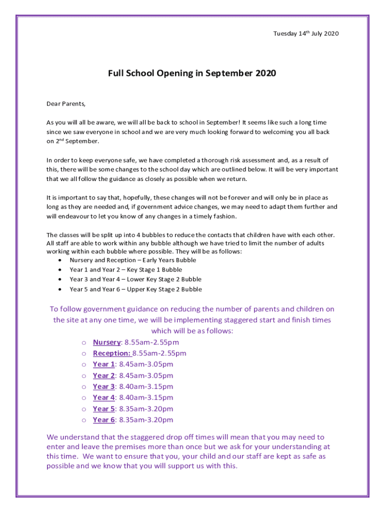 Teal Salmon ButtyTuesday 14th July 2020Full School Opening in September 2020 Dear Parents, As you will all be aware, we will all be back to school in September! It seems like such a long time since