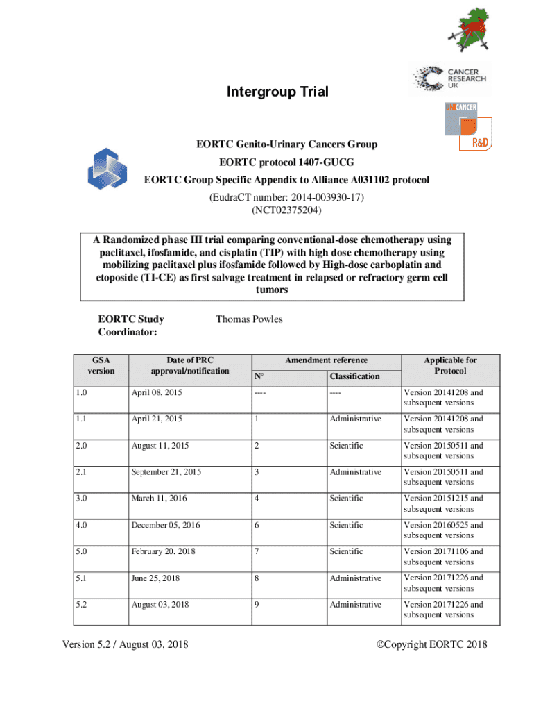 Intergroup TrialEORTC GenitoUrinary Cancers Group EORTC protocol 1407GUCG EORTC Group Specific Appendix to Alliance A031102 protocol (EudraCT number: 201400393017) (NCT02375204) A Randomized phase