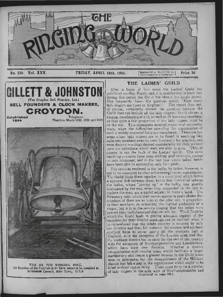 No. 995.Yol. X X Y .(Registered at tho Q.l .O. fori Ltrnnsmisslon as a newspaper. JFRIDAY, APRIL 18th, 1930.TH EGILLETT & JOHNSTON (T h e C royd on Bell F ou nd ry, Ltd.)BELL FO UNDERS & CLOCK M AKERS,CROYDON.