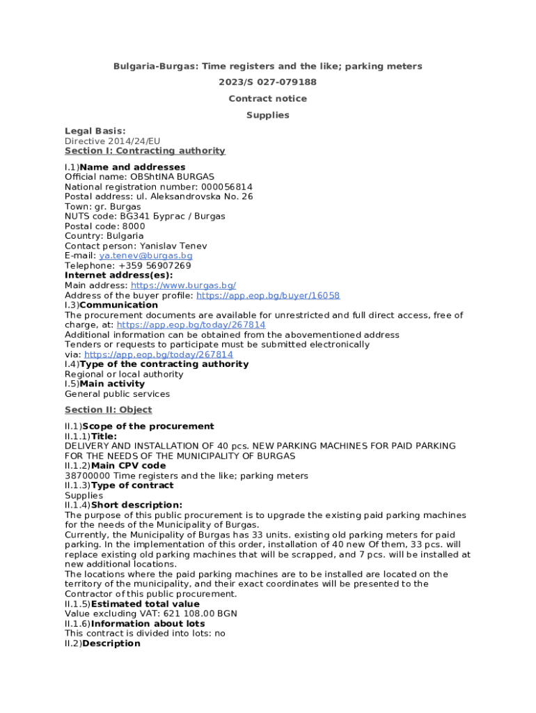 What is Bulgaria-burgas: Time Registers and the Like; Parking Meters Form?