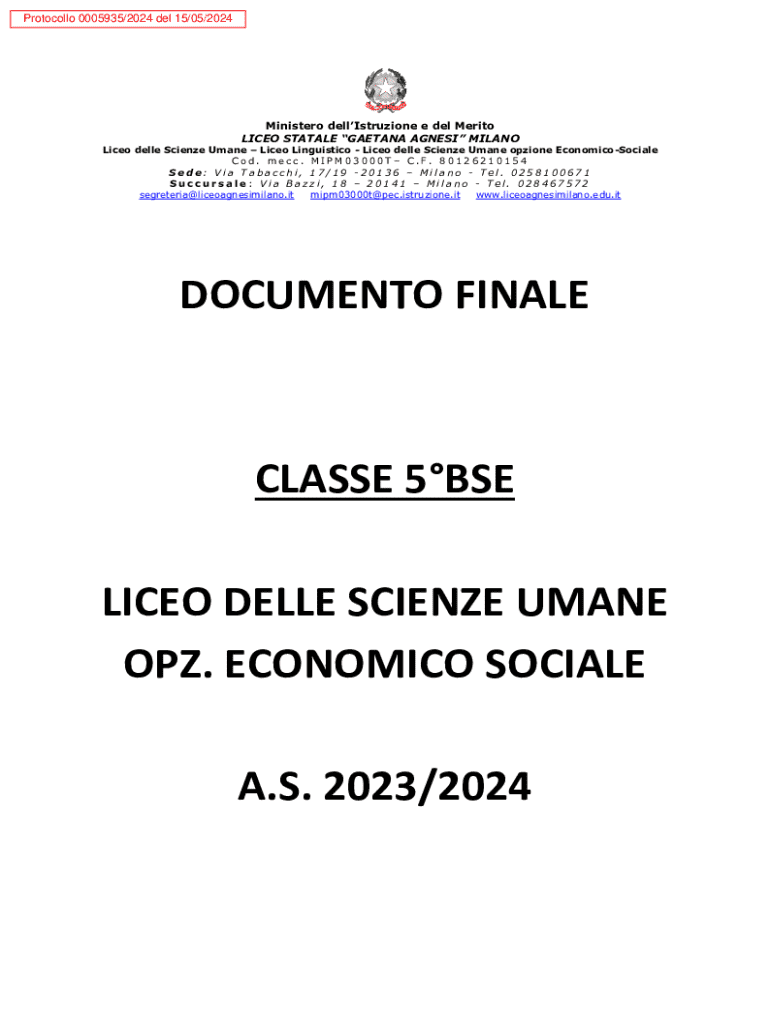 Protocollo 0005935/2024 del 15/05/2024Ministero dellIstruzione e del Merito LICEO STATALE GAETANA AGNESI MILANOLiceo delle Scienze Umane Liceo Linguistico Liceo delle Scienze Umane opzione EconomicoSociale