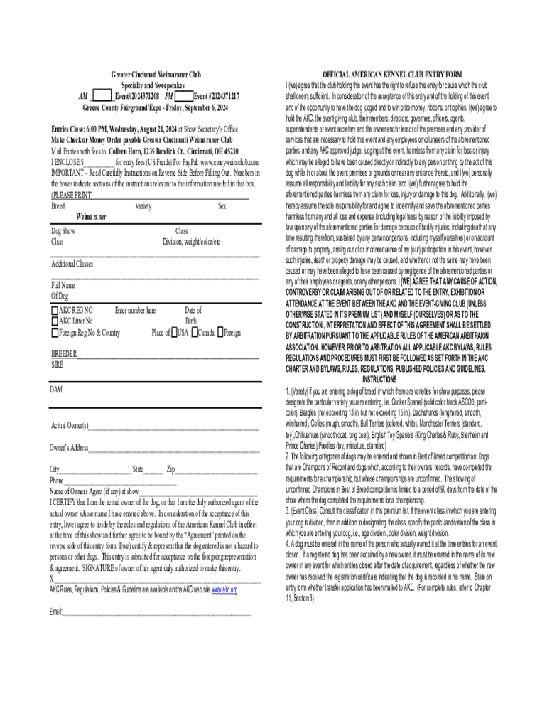 How to fill out greater cincinnati weimaraner club
