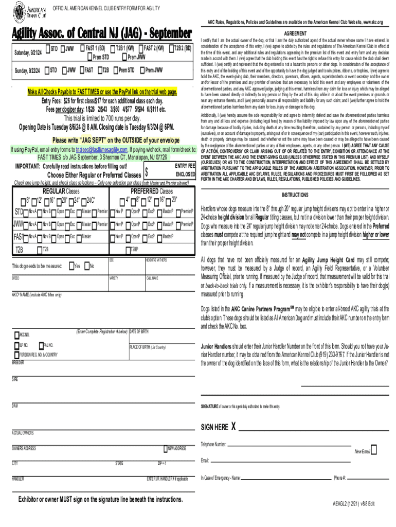 ENTRIES OPEN: TUESDAY AUGUST 6, 2024, @ 8:00 AM At 3 Sherman Ct., Manalapan, NJ 07726 Entries Received Prior to OPENING DATE will not be accepted. No hand deliveries in the first 24 hours after opening