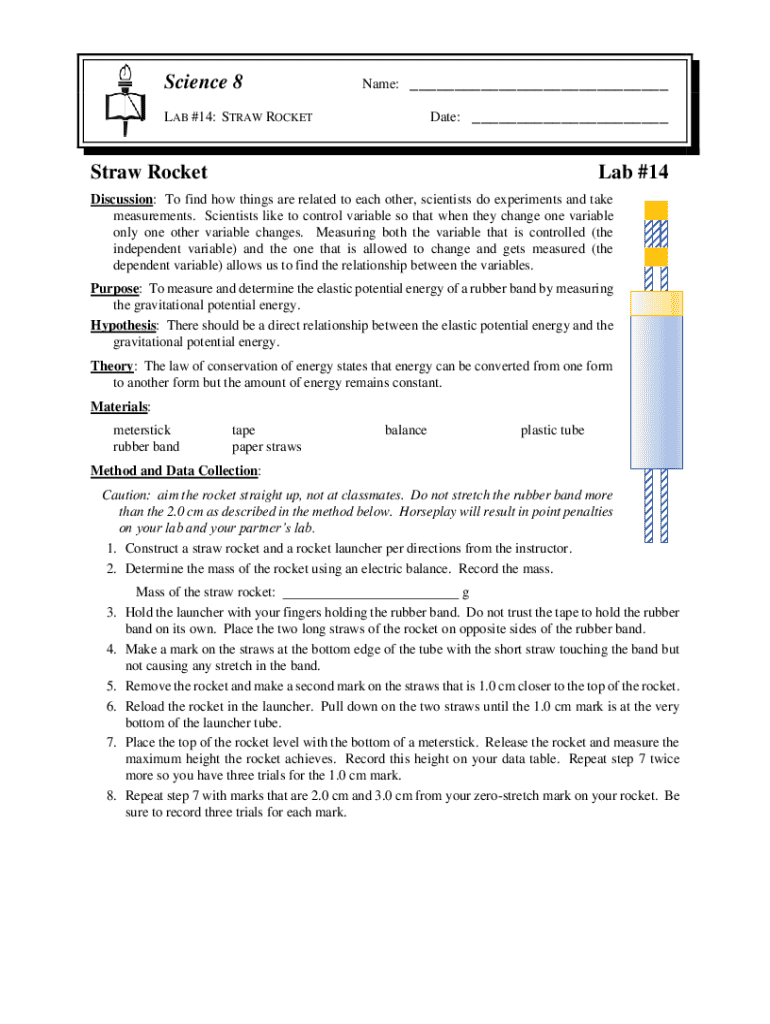 Science 8Name:___LAB #14: STRAW ROCKETDate:___Straw RocketLab #14Discussion: To find how things are related to each other, scientists do experiments and take measurements. Scientists like to control