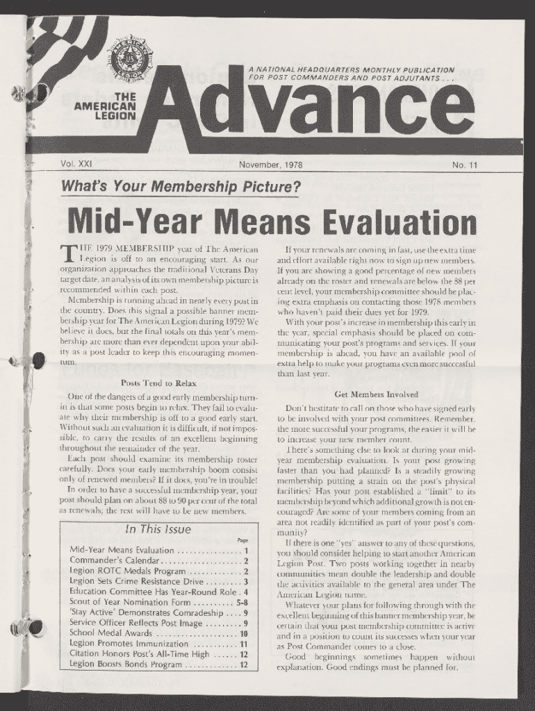 A NATIONAL HEADQUARTERS MONTHLY PUBLICATION FOR POST COMMANDERS AND POST ADJUTANTS . . .Vol. XXINovember, 1978No. 11Whats Your Membership Picture?MidYear Means EvaluationTHE 1979 MEMBERSHIP year of