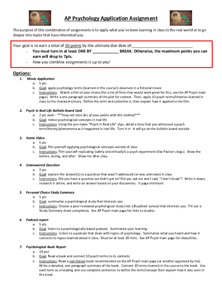 Review the syllabus for the AP Psychology course to understand the assignment requirements.