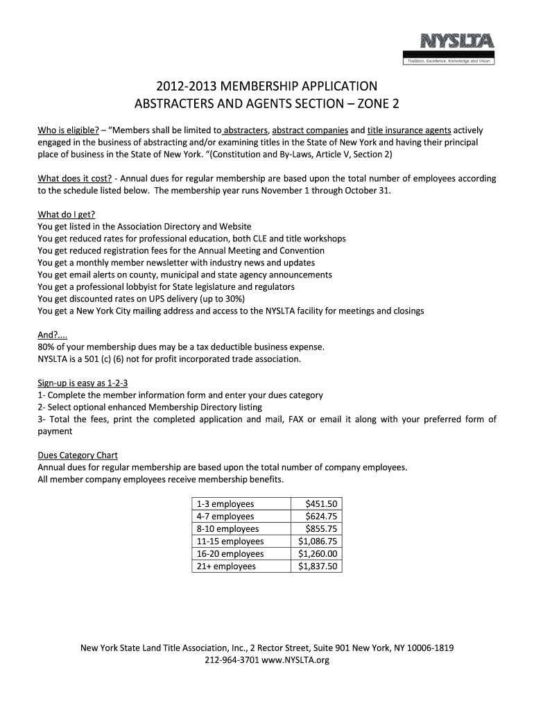 20122013 MEMBERSHIP APPLICATION ABSTRACT ERS AND AGENTS SECTION ZONE 2 Who is eligible? Members shall be limited to abstracted, abstract companies and title insurance agents actively engaged in the