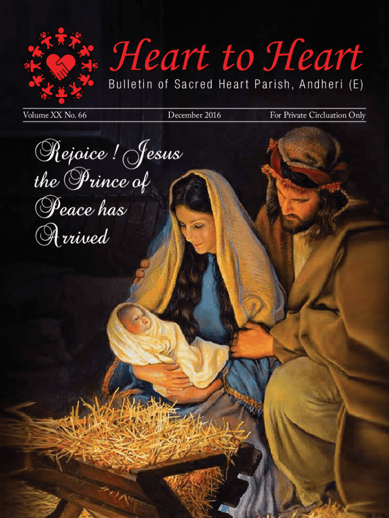 Heart to HeartBulletin of Sacred Heart Parish, Andheri (E) Volume XX No. 66December 2016For Private Circluation OnlyOur Regular Programme SUNDAY MASSES Morning 6:30 am (English Mass) 7:30 am (Konkani