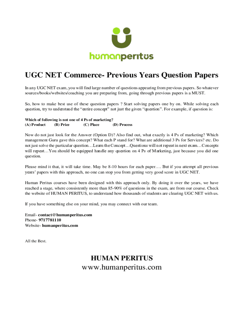 UGC NET Commerce Previous Years Question Papers In any UGC NET exam, you will find large number of questions appearing from previous papers. So whatever sources/books/websites/coaching you are preparing