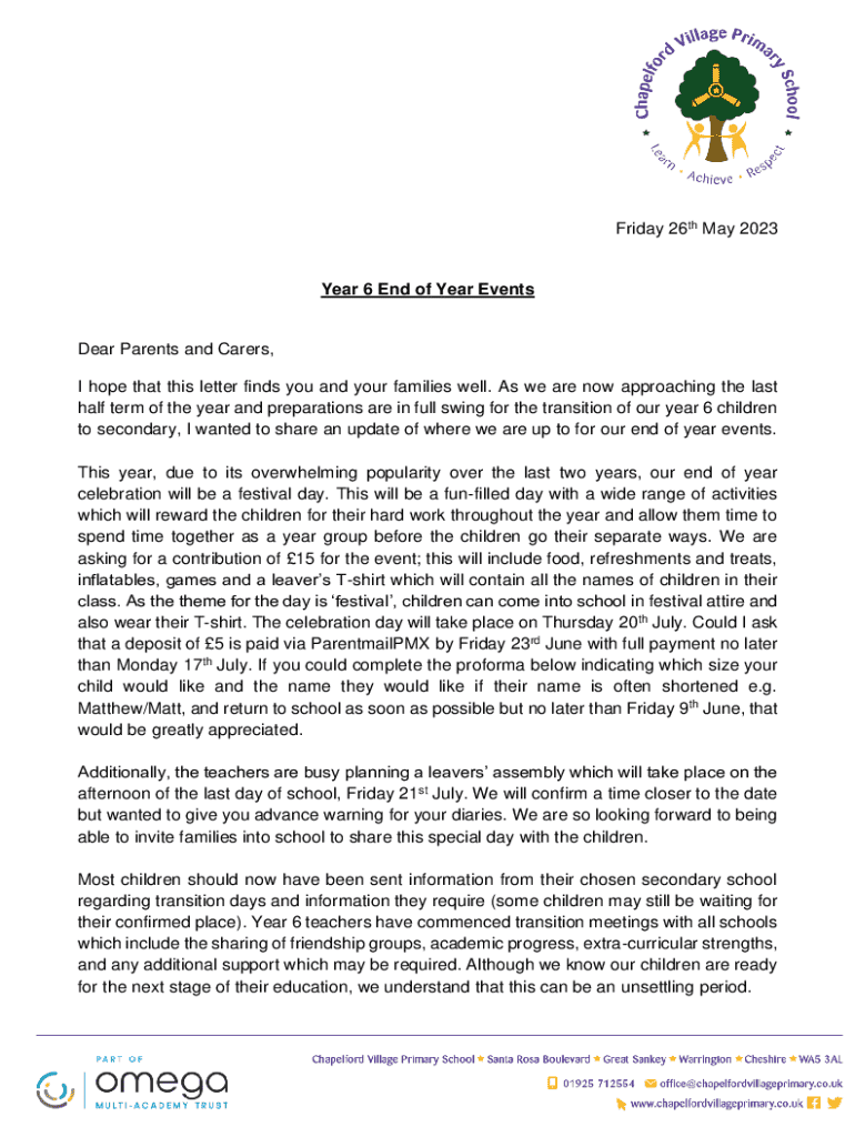 Get the free Year 6 End of Year Events
