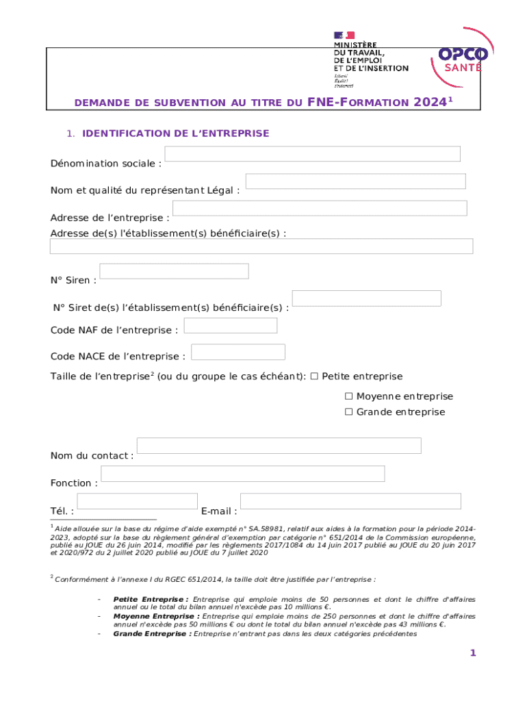 What is demande de subvention au titre du FNE-ation Form?