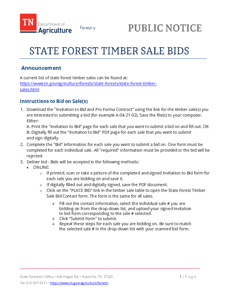 Get the free Timber Sale Invitation to Bid