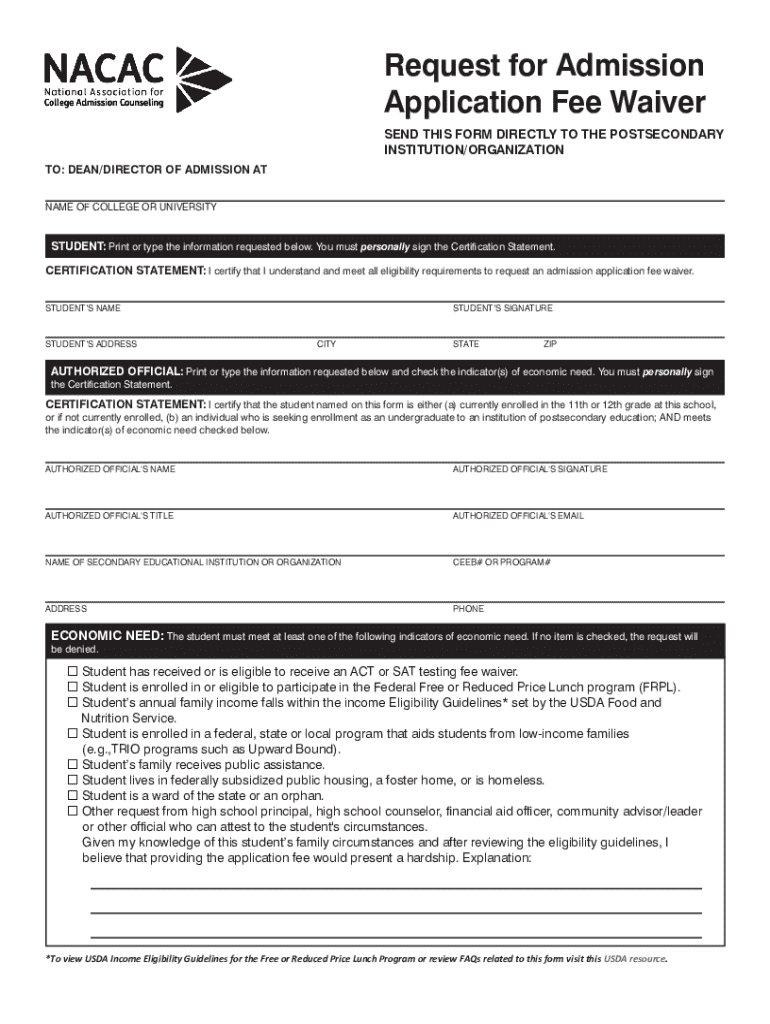 Get the free Request For Admission Application Fee Waiver: Student