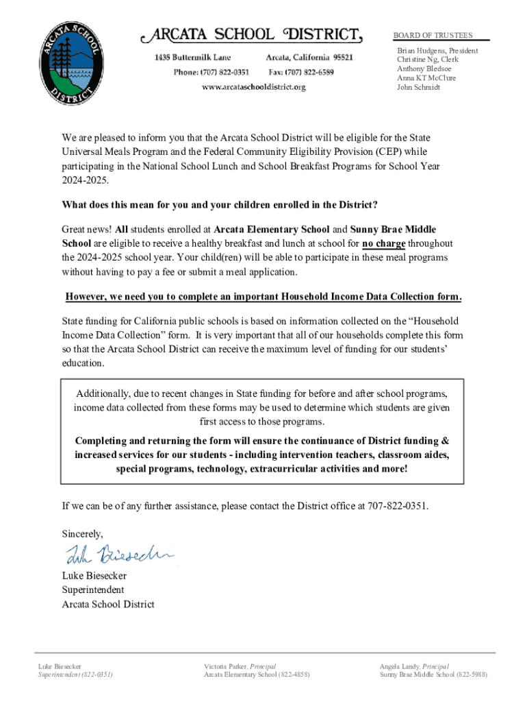 BOARD OF TRUSTEES Brian Hudgens, President Christine Ng, Clerk Anthony Bledsoe Anna KT McClure John SchmidtWe are pleased to inform you that the Arcata School District will be eligible for the State