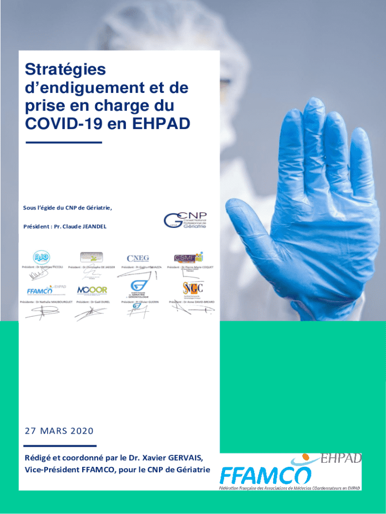 Stratgies dendiguement et de prise en charge du COVID19 en EHPADSous lgide du CNP de Griatrie, Prsident : Pr. Claude JEANDEL27 MARS 2020 1 Rdig et coordonn par le Dr. Xavier GERVAIS, VicePrsident