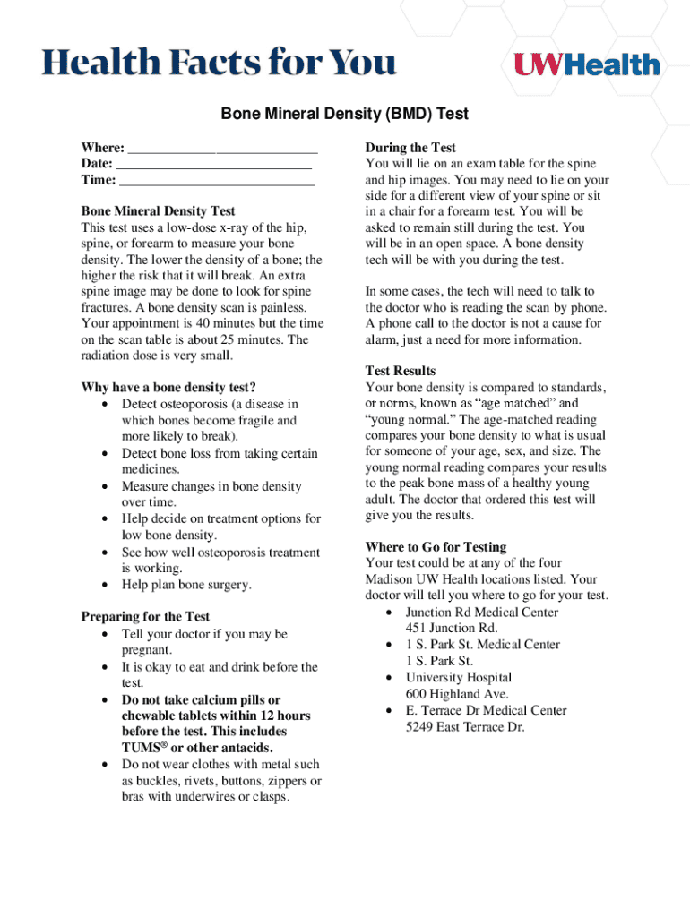 How to fill out bone mineral density test