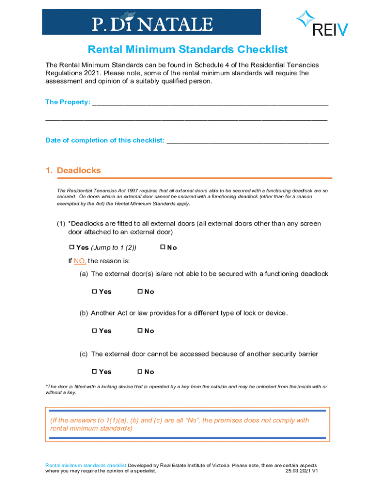 Rental Minimum Standards Checklist The Rental Minimum Standards can be found in Schedule 4 of the Residential Tenancies Regulations 2021. Please note, some of the rental minimum standards will require