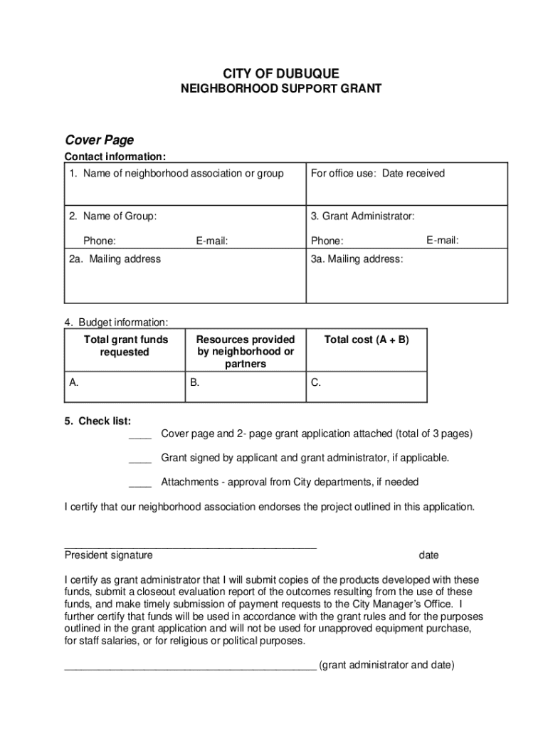 NEIGHBORHOOD SUPPORT GRANT Purpose The City of Dubuques Neighborhood Support Grant program is a neighborhoodbased community development effort which supports groups of neighbors working to make a