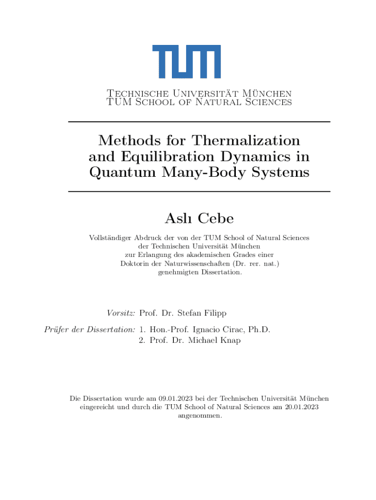 Technische Universitt Mnchen TUM School of Natural SciencesMethods for Thermalization and Equilibration Dynamics in Quantum ManyBody Systems Asl Cebe Vollstndiger Abdruck der von der TUM School of