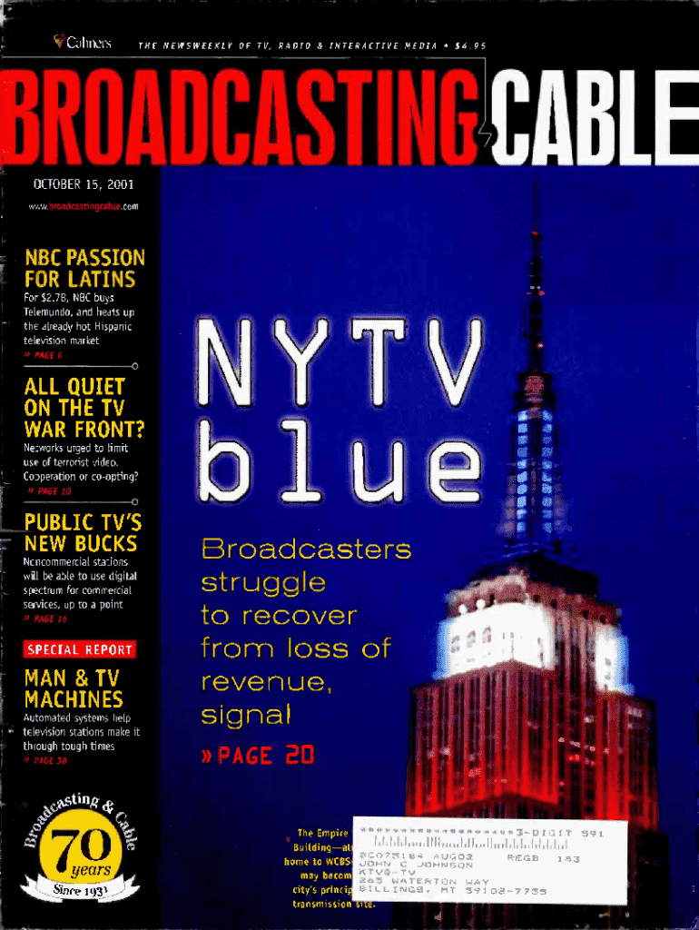C.hncl:,THE NEFS WEEKLY OF TV, RADIO&INTERACTIVE MEDIA54.951R A i CASTINOsCA i L OCTOBER 15,2001NBC PASSION FOR LATINS For $2.7B, NBC buys Telemundo, and heats up the already hot Hispanic television
