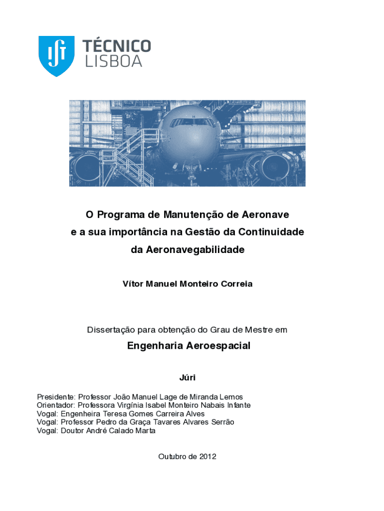 O Programa de Manuteno de Aeronave e a sua importncia na Gesto da Continuidade da AeronavegabilidadeVtor Manuel Monteiro CorreiaDissertao para obteno do Grau de Mestre emEngenharia Aeroespacial Jri