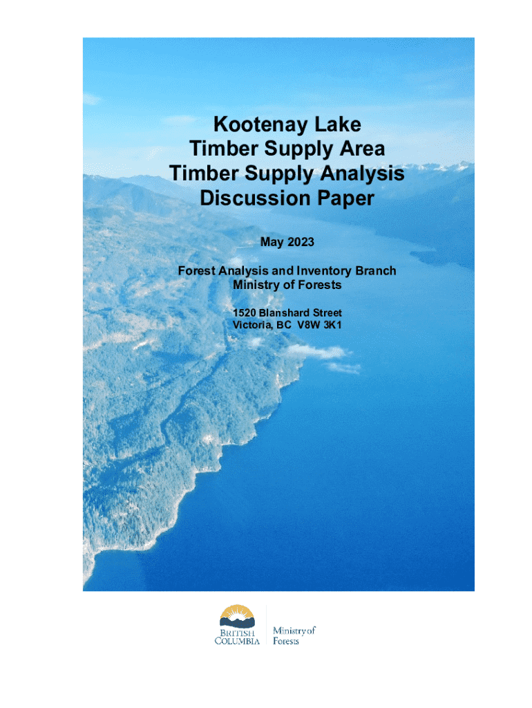 Kootenay Lake Timber Supply Area Timber Supply Analysis Discussion Paper May 2023 Forest Analysis and Inventory Branch Ministry of Forests 1520 Blanshard Street Victoria, BC V8W 3K1Cover photograph: