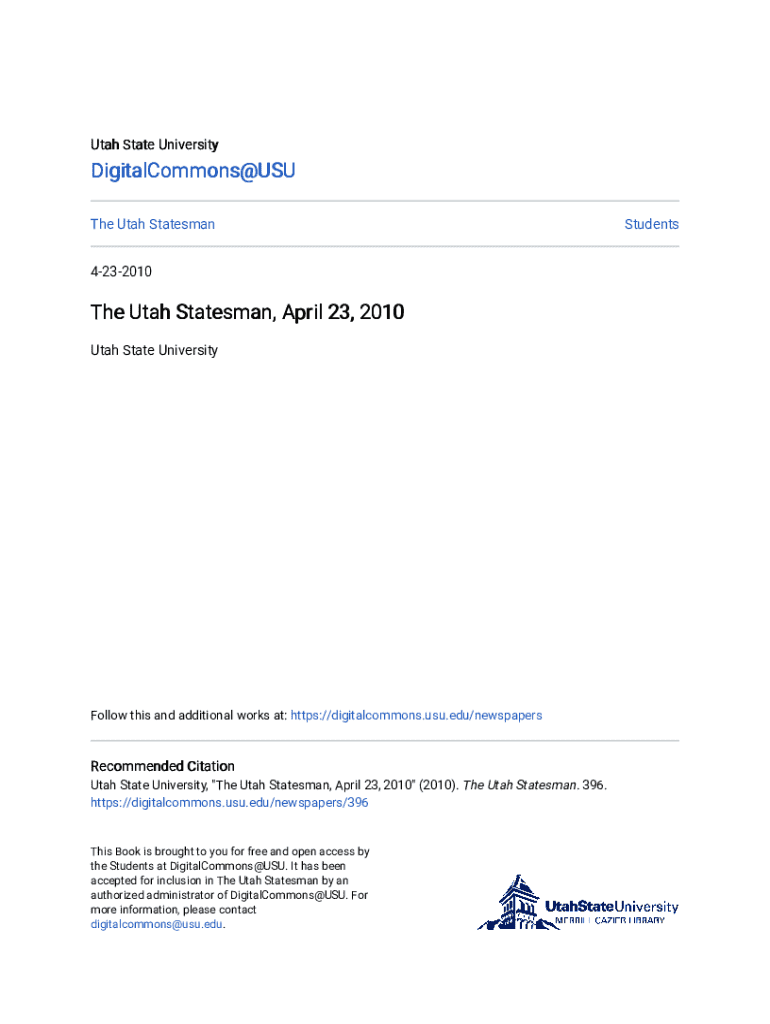 Utah State UniversityDigitalCommons@USU The Utah Statesman 4232010The Utah Statesman, April 23, 2010 Utah State UniversityFollow this and additional works at: https://digitalcommons.usu.edu/newspapersRecommended