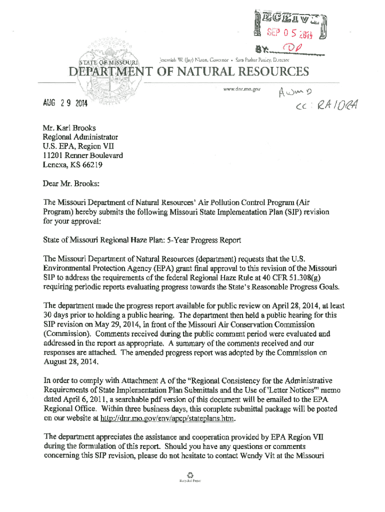 Mr. Karl Brooks Page TwoDepartment of Natural Resources\' Air Pollution Control Program, P.O. Box 176, Jefferson City, Missouri 65102, or by telephone at (573) 7514817. Sincerely, AIR POL UTION CONTROL