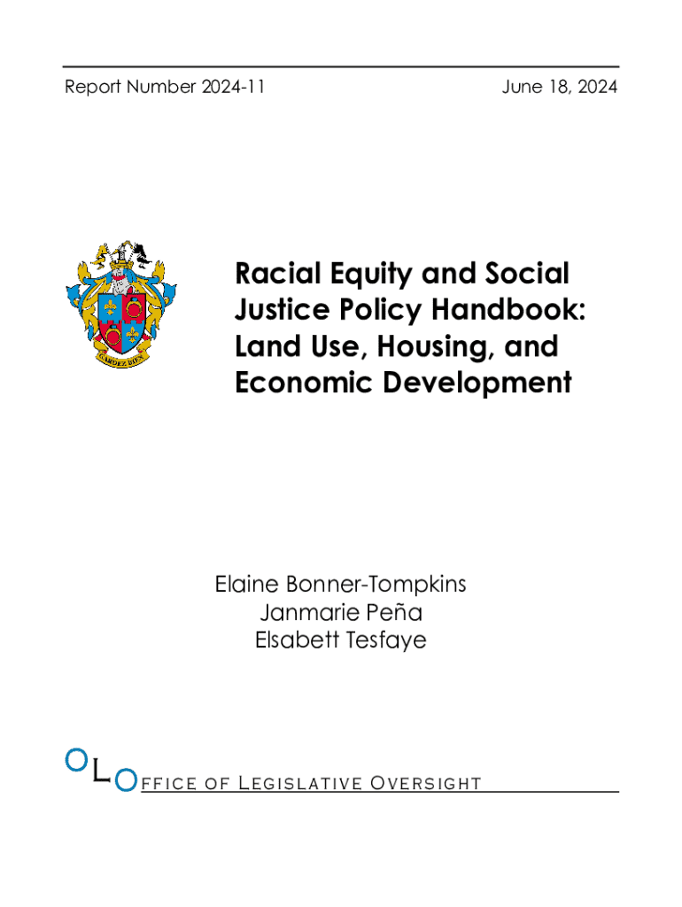 Report Number 202411June 18, 2024Racial Equity and Social Justice Policy Handbook: Land Use, Housing, and Economic DevelopmentElaine BonnerTompkins Janmarie Pea Elsabett TesfayeOLOffice of Legislative