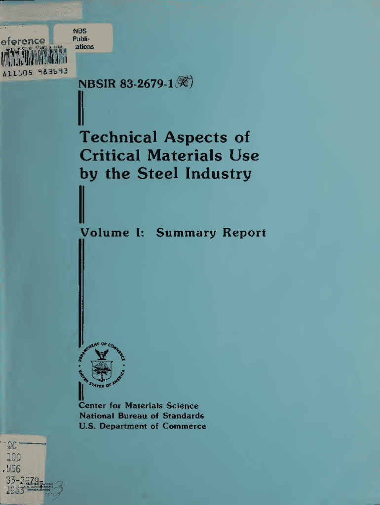 NBSIR8326791 01)Technical Aspects of Critical Materials Use by the Steel IndustryVolumeI:Summary ReportCenter for Materials Science National Bureau of Standards U.S. Department of CommerceQC 190 .1)5683