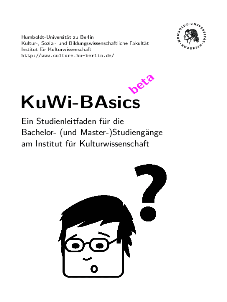 HumboldtUniversitt zu Berlin Kultur, Sozial und Bildungswissenschaftliche Fakultt Institut fr Kulturwissenschaft http://www.culture.huberlin.de/a t beKuWiBAsicsEin Studienleitfaden fr die Bachelor