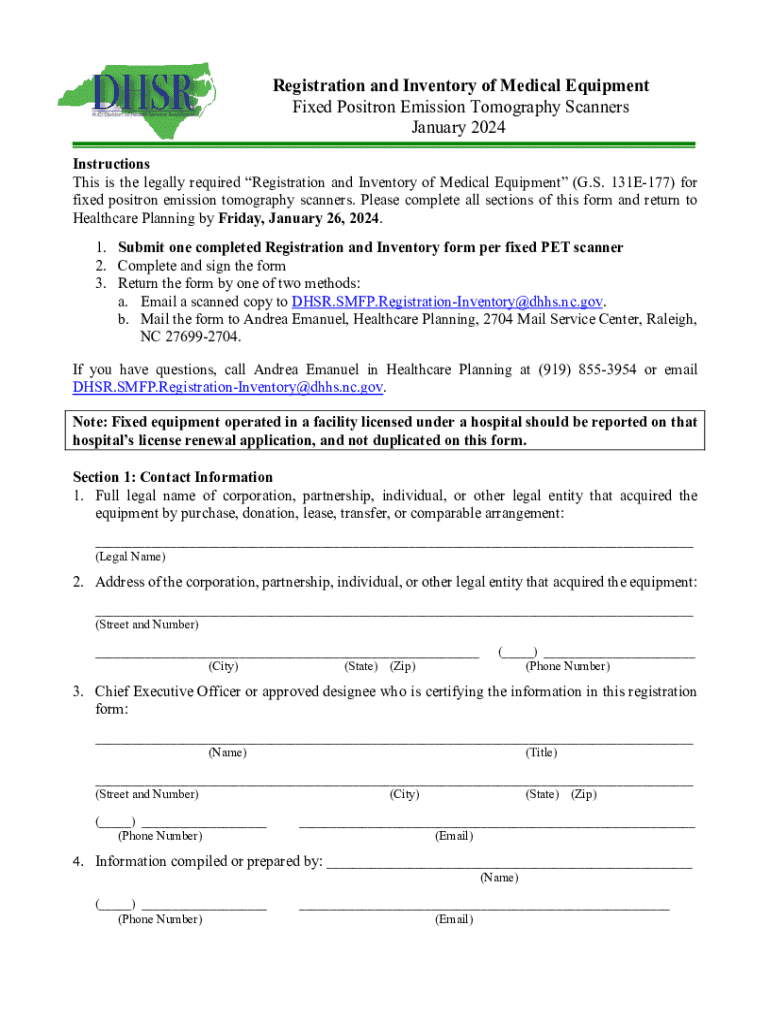 Registration and Inventory of Medical Equipment Fixed Positron Emission Tomography Scanners January 2024 Instructions This is the legally required Registration and Inventory of Medical Equipment (G.S.