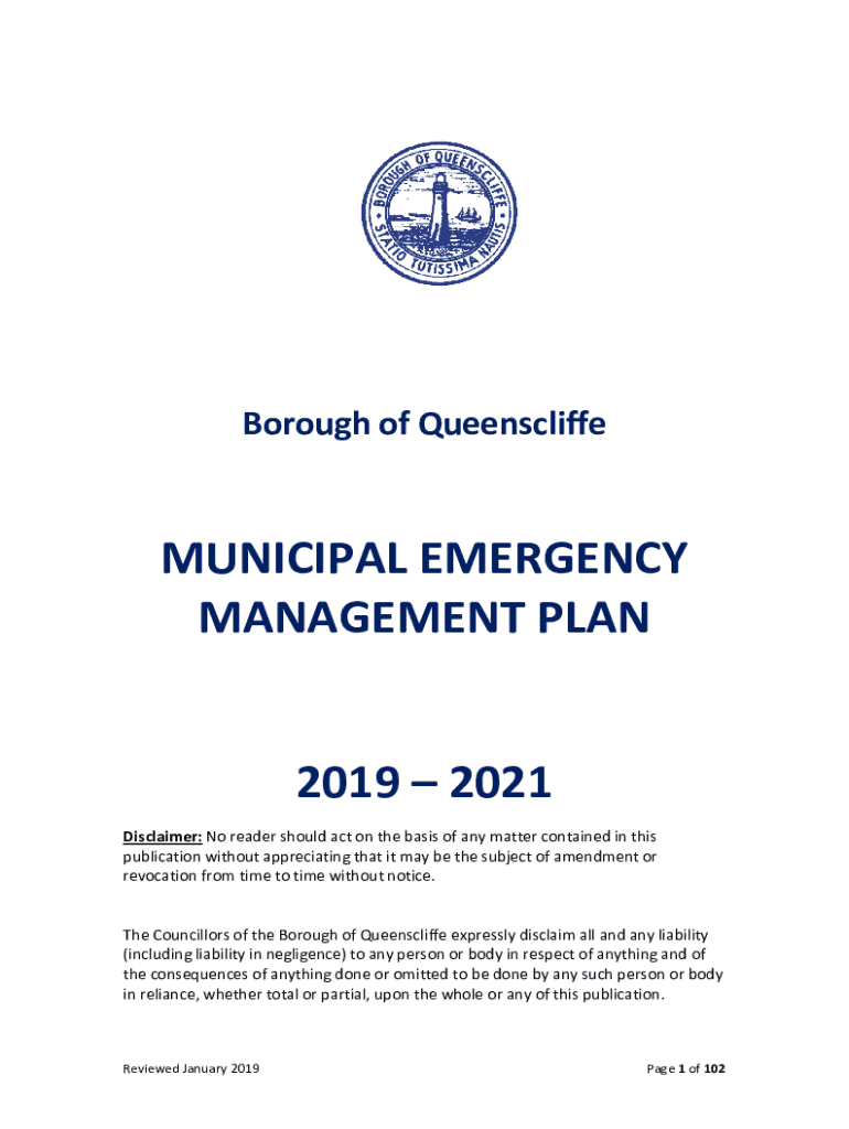 Borough of QueenscliffeMUNICIPAL EMERGENCY MANAGEMENT PLAN 2019 2021 Disclaimer: No reader should act on the basis of any matter contained in this publication without appreciating that it may be the