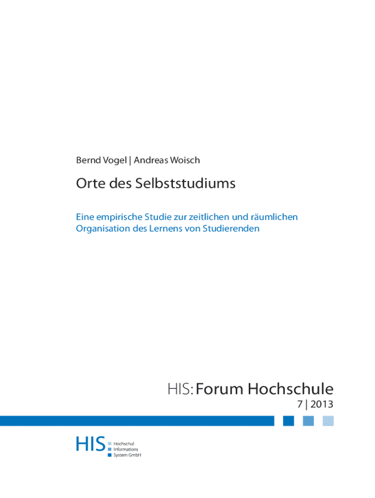 Bernd Vogel | Andreas WoischOrte des Selbststudiums Eine empirische Studie zur zeitlichen und rumlichen Organisation des Lernens von StudierendenHIS: Forum Hochschule 7 | 2013Dr. Bernd Vogel Tel.: