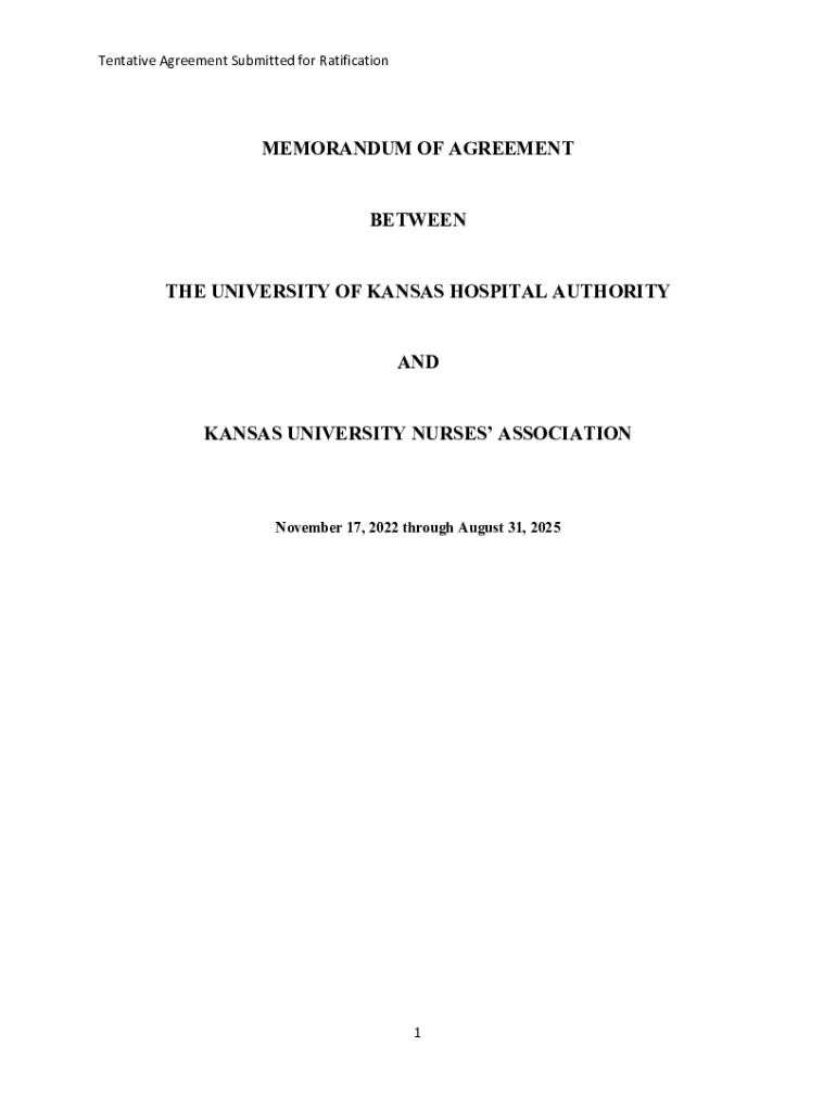 Tentative Agreement Submitted for RatificationMEMORANDUM OF AGREEMENT BETWEEN THE UNIVERSITY OF KANSAS HOSPITAL AUTHORITY AND KANSAS UNIVERSITY NURSES ASSOCIATIONNovember 17, 2022 through August 31,
