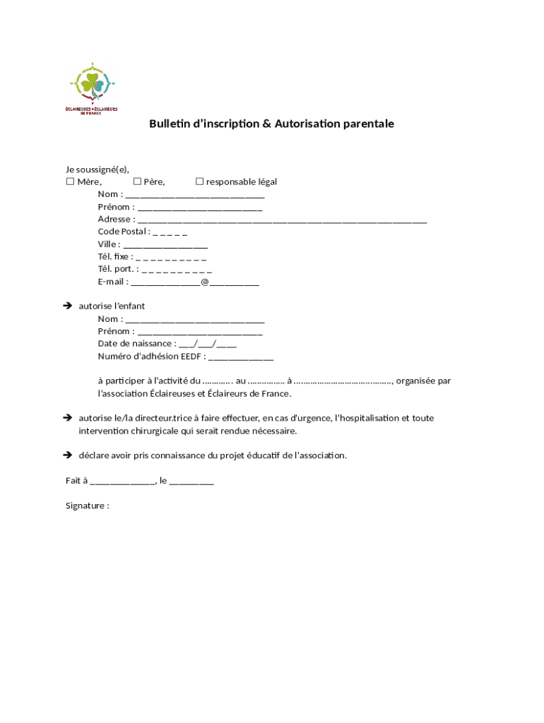 How to fill Bulletin dinscription & Autorisation parentale word template
