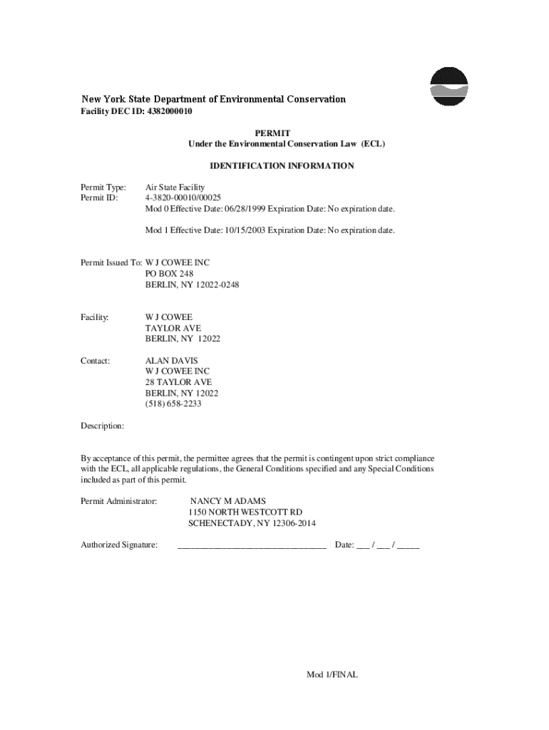 Get the free Facility DEC ID: 4382000010 PERMIT Under the ... - NY.gov