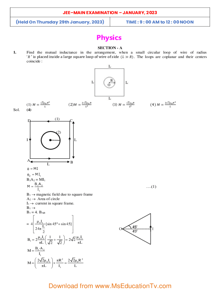 Get the free Jee–main Examination – January, 2023