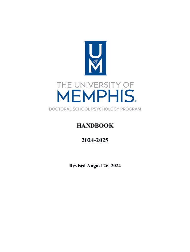 This handbook provides essential information regarding the School Psychology doctoral program at The University of Memphis, including program requirements, faculty details, resources, and administrative procedures. It covers topics such as coursework, practicum, internship, comprehensive examinations, and ethical standards necessary for students pursuing a Ph.D. in School Psychology.
