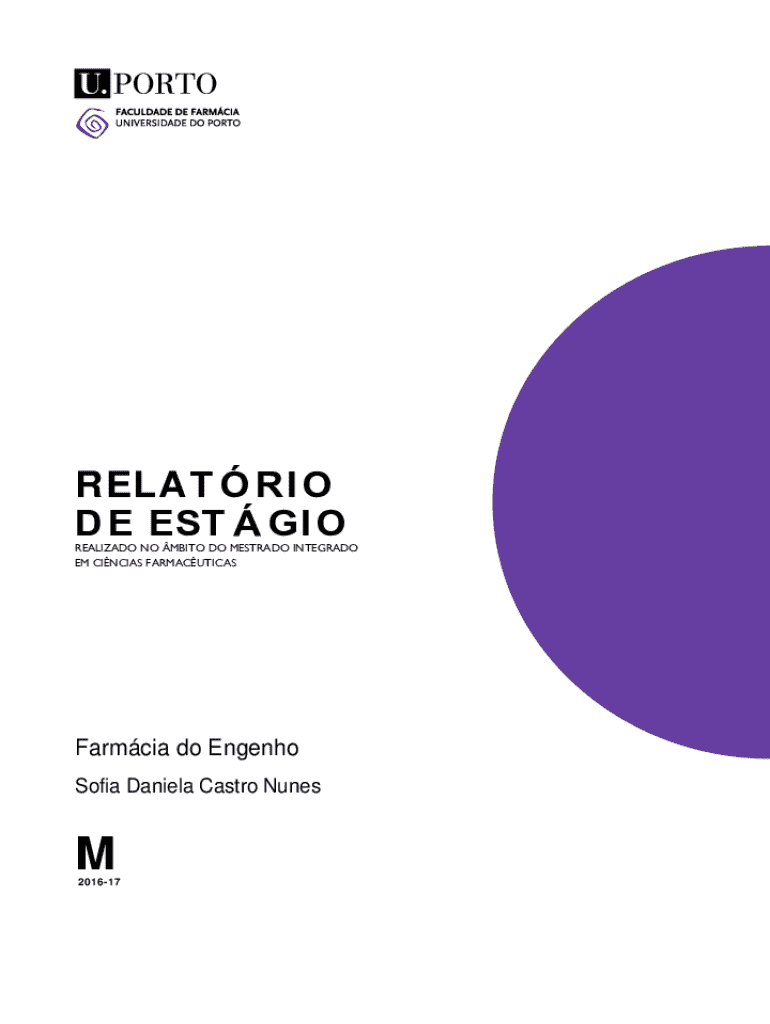 RELAT RI O D E EST GI OREALIZADO NO MBITO DO MESTRADO INTEGRADO EM CINCIAS FARMACUTICASFarmcia do EngenhoColocar local de estgioSofia Daniela Castro Nunes Colocar nome completo do EstudanteM2016 17Faculdade