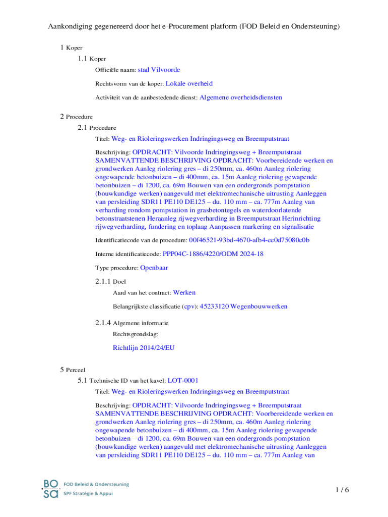 Aankondiging gegenereerd door het eProcurement platform (FOD Beleid en Ondersteuning) 1 Koper 1.1 Koper Officile naam: stad Vilvoorde Rechtsvorm van de koper: Lokale overheid Activiteit van de aanbestedende