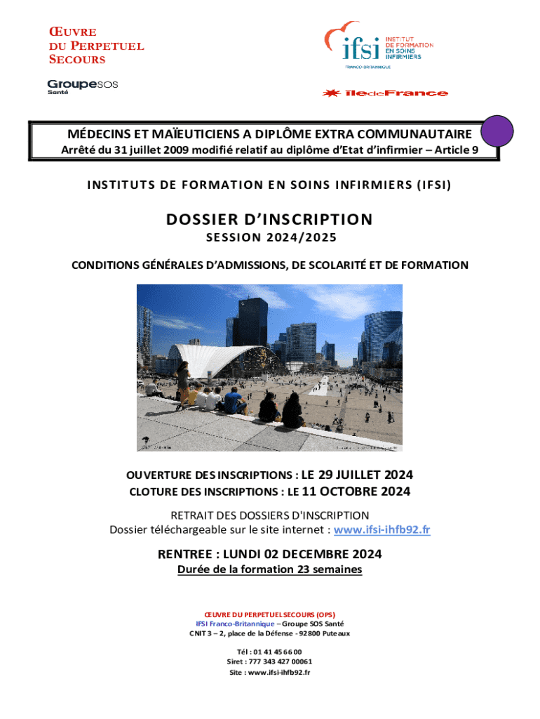 UVRE DU PERPETUEL SECOURSMDECINS ET MAEUTICIENS A DIPLME EXTRA COMMUNAUTAIRE Arrt du 31 juillet 2009 modifi relatif au diplme dEtat dinfirmier Article 9INSTITUTS DE FORMATION EN SOINS INFIRMIERS (IFSI)DOSSIER