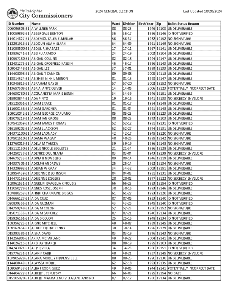 2024 GENERAL ELECTION ID Number 00609650651 11005989251 11401462751 11229191651 11105860051 11383674151 11055718051 11243127351 10904244851 11440809851 11331452451 11034581651 11365750851 01463078051