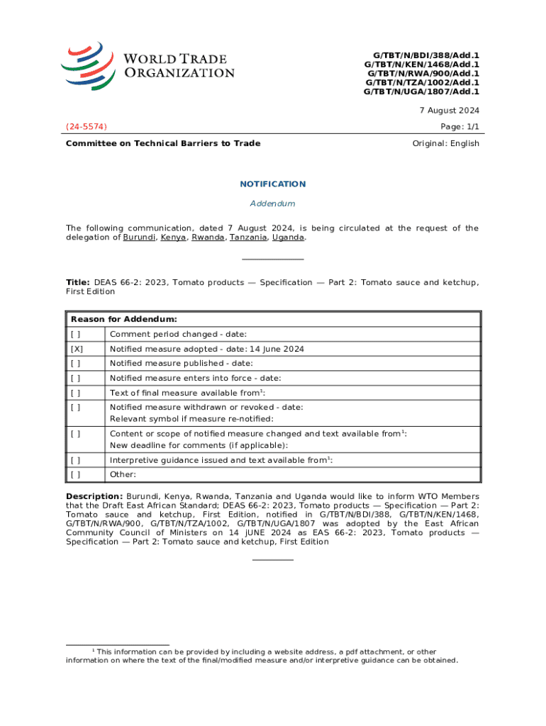 Template Burundi joins East African Community's One Network Area instructions
