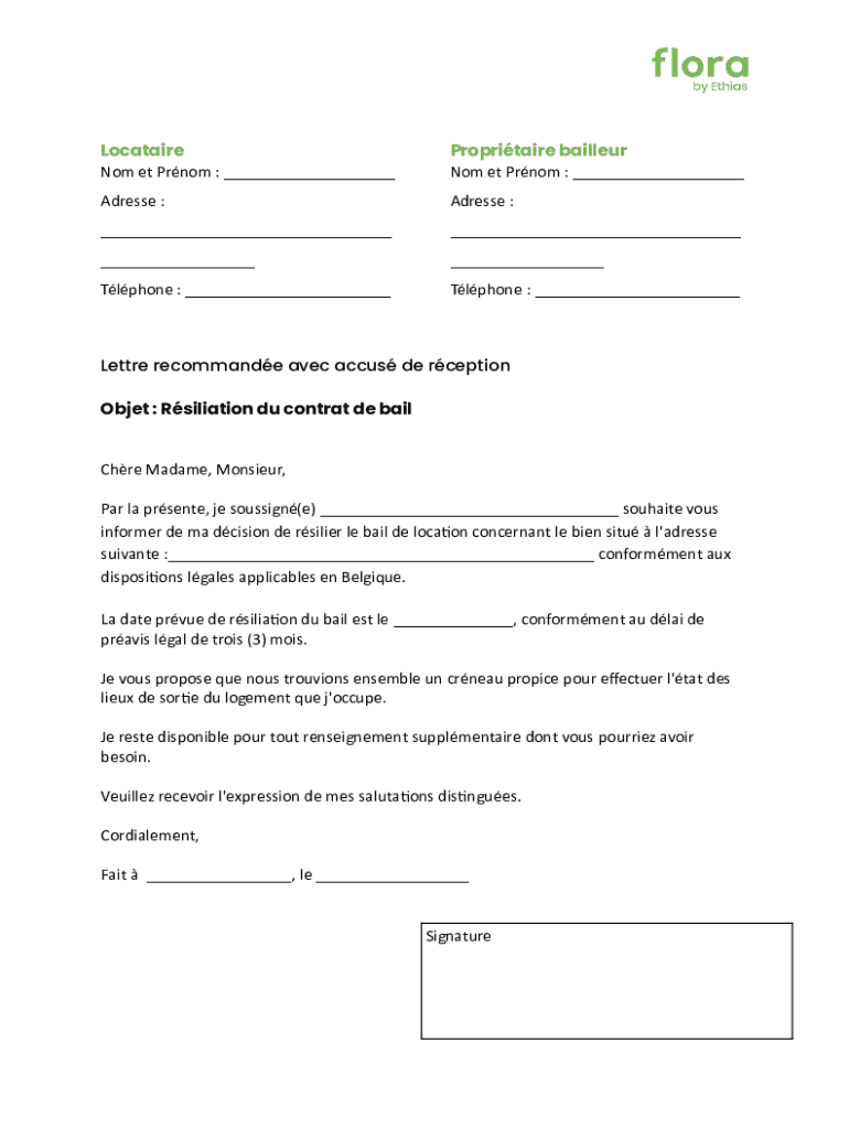 Locataire Nom et Prnom : ___Propritaire bailleur Nom et Prnom : ___Adresse :Adresse :____________Tlphone : ___Tlphone : ___Lettre recommande avec accus de rception Objet : Rsiliation du contrat de
