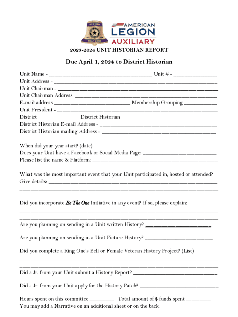 Fill out your unit historian report online with pdfFiller!