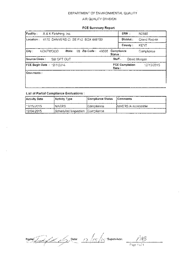 Get the free Fce Summary Report