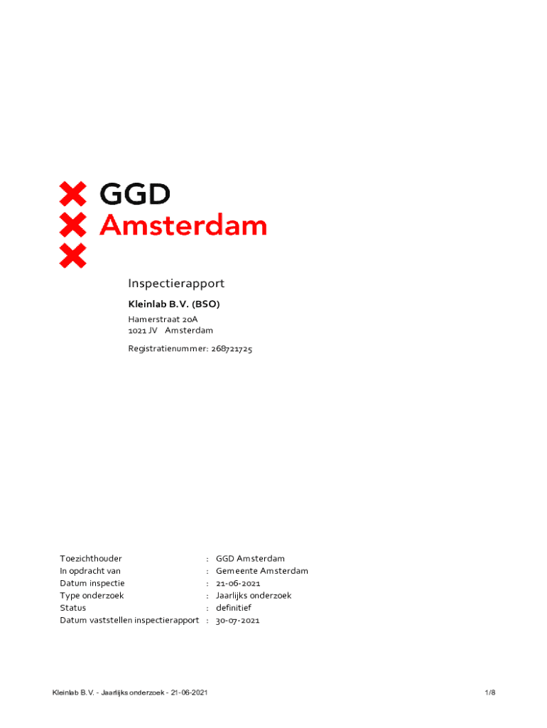 Inspectierapport Kleinlab B.V. (BSO) Hamerstraat 20A 1021 JV Amsterdam Registratienummer: 268721725Toezichthouder In opdracht van Datum inspectie Type onderzoek Status Datum vaststellen inspectierapport: